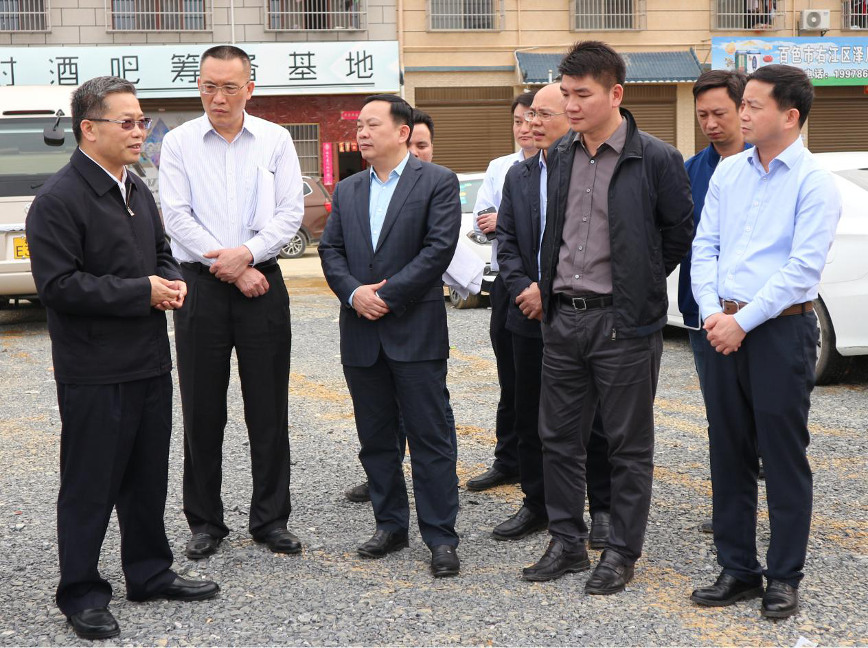 自治區(qū)政協(xié)副主席、百色市委書記、百色市人大常委會主任彭曉春一行到益眾投資公司負責(zé)的棚戶區(qū)改造項目檢查工作進展情況