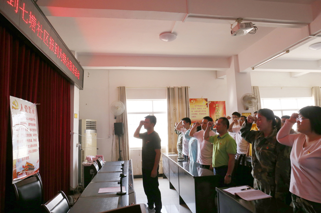 ????????之后,全體黨員重溫《入黨誓詞》?!拔抑驹讣尤胫袊?guó)共產(chǎn)黨,擁護(hù)黨的綱領(lǐng),遵守黨的章程,履行黨員義務(wù),執(zhí)行黨的決定......”,清澈嘹亮的聲音貫穿整個(gè)會(huì)場(chǎng),進(jìn)一步強(qiáng)化了黨員的責(zé)任意識(shí)。