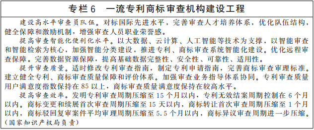 提高知識產(chǎn)權(quán)審查質(zhì)量和審查效率。完善適應創(chuàng)新發(fā)展需求的知識產(chǎn)權(quán)審查管理體系,優(yōu)化專利、商標審查協(xié)作機制。提升專利商標審查機構(gòu)能力水平,強化專利、商標、版權(quán)、地理標志、植物新品種全流程審查質(zhì)量管控,提升知識產(chǎn)權(quán)授權(quán)確權(quán)質(zhì)量。提高專利、商標審查業(yè)務精細化管理水平,優(yōu)化審查資源配置,加強智能化技術(shù)運用,提升審查效能,縮短審查周期。完善專利、商標審查模式,加強審查與產(chǎn)業(yè)發(fā)展的政策協(xié)同和業(yè)務聯(lián)動,滿足產(chǎn)業(yè)綠色轉(zhuǎn)型和新領(lǐng)域新業(yè)態(tài)創(chuàng)新發(fā)展等社會多樣化需求。(中央宣傳部、工業(yè)和信息化部、農(nóng)業(yè)農(nóng)村部、國家林草局、國家知識產(chǎn)權(quán)局等按職責分工負責)