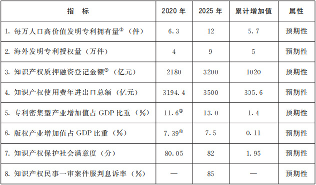 “十四五”時期知識產(chǎn)權(quán)發(fā)展主要指標