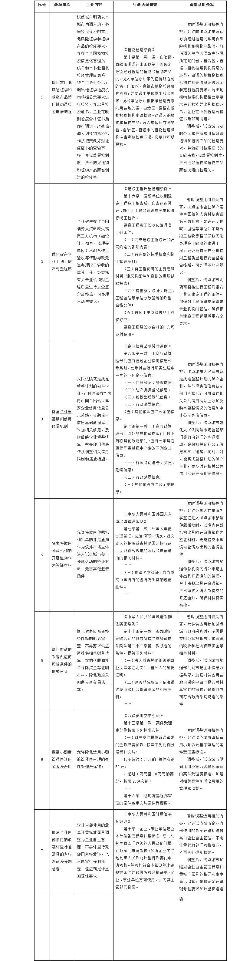 2.國務院決定在營商環(huán)境創(chuàng)新試點城市暫時調整適用有關行政法規(guī)規(guī)定目錄