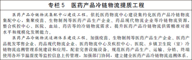完善醫(yī)藥產(chǎn)品冷鏈物流設(shè)施網(wǎng)絡(luò)。鼓勵(lì)醫(yī)藥流通企業(yè)、藥品現(xiàn)代物流企業(yè)建設(shè)醫(yī)藥物流中心,完善醫(yī)藥冷庫網(wǎng)絡(luò)化布局及配套冷鏈設(shè)施設(shè)備功能,提升醫(yī)藥產(chǎn)品冷鏈全程無縫銜接的信息化管理水平。推動(dòng)醫(yī)藥流通企業(yè)按《藥品經(jīng)營(yíng)質(zhì)量管理規(guī)范》要求配備冷藏冷凍設(shè)施設(shè)備,支持疾控中心、醫(yī)院、鄉(xiāng)鎮(zhèn)衛(wèi)生院(室)等醫(yī)療網(wǎng)點(diǎn)提高醫(yī)藥產(chǎn)品冷鏈物流和使用環(huán)節(jié)的質(zhì)量保障水平。加強(qiáng)醫(yī)藥物流中心與冷鏈末端的無縫銜接,鼓勵(lì)發(fā)展多溫共配、接力配送等模式,探索發(fā)展超低溫配送,構(gòu)建廣覆蓋、高效率、低成本、安全可靠的醫(yī)藥產(chǎn)品冷鏈物流網(wǎng)絡(luò)。