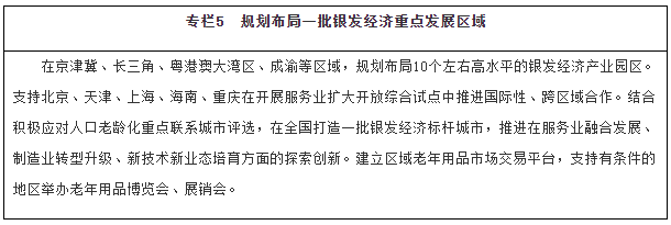 各?。ㄗ灾螀^(qū)、直轄市)要根據(jù)人口老齡化發(fā)展形勢,制定實施專項規(guī)劃,加強與相關規(guī)劃銜接。各級老齡工作委員會要發(fā)揮統(tǒng)籌協(xié)調作用,推動老齡工作委員會各成員單位履職盡責,形成工作合力。發(fā)揮養(yǎng)老服務聯(lián)席會議制度作用,推進養(yǎng)老服務體系建設,強化區(qū)域養(yǎng)老服務資源統(tǒng)籌管理。支持城市群、都市圈打造養(yǎng)老服務體系一體化建設格局,形成服務能力銜接、產業(yè)發(fā)展協(xié)同的合作區(qū)域。支持大型城市和區(qū)域中心城市推動養(yǎng)老產業(yè)集聚發(fā)展,充分發(fā)揮輻射帶動和示范作用。推動以地級行政區(qū)為單位制定“整體解決方案”,將老齡事業(yè)發(fā)展和養(yǎng)老服務體系建設納入經(jīng)濟社會發(fā)展全局中通盤考慮,全方位整合資源力量,充分調動各方積極性,推動兜底性、普惠型、多樣化三種路徑協(xié)同發(fā)展。